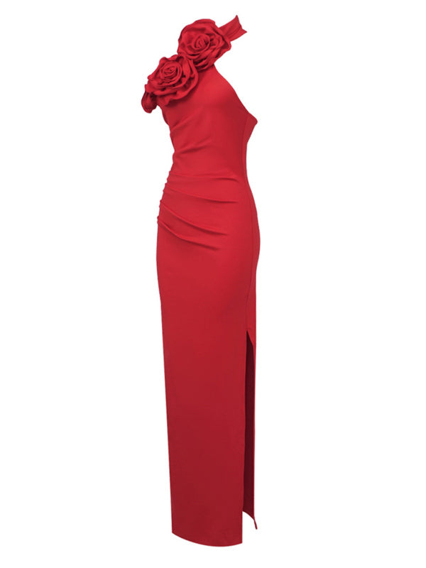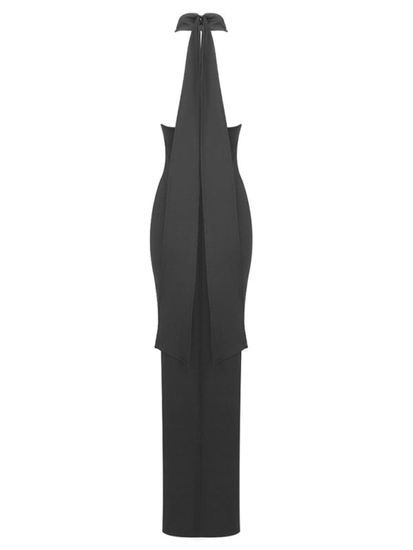 New style ribbon flower halter neck long dress sleeveless dress